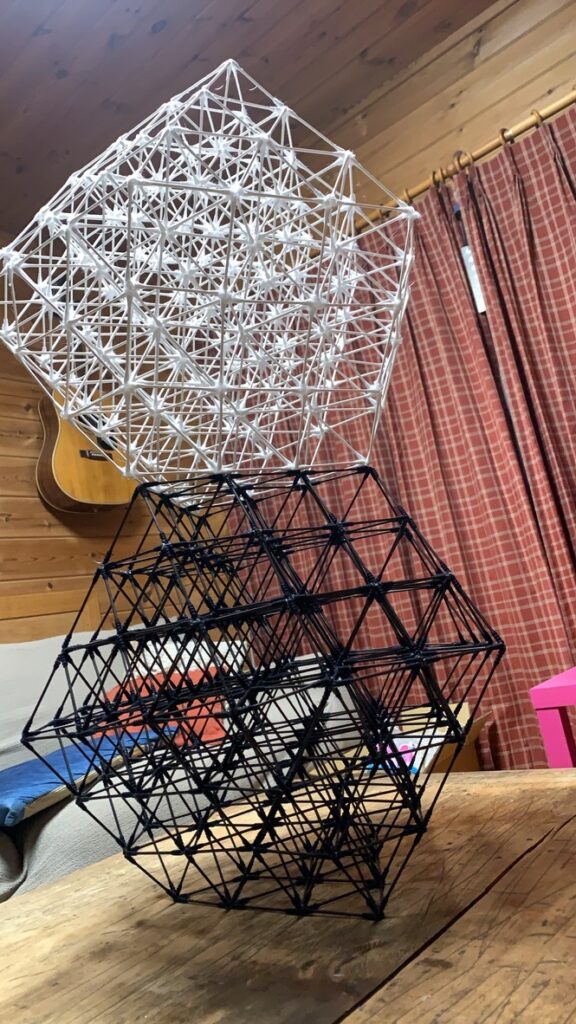 これはベクトル平衡体というものです。同じ長さの辺で作られた立体で中心ができるのは、このベクトル平衡体だけのようです。